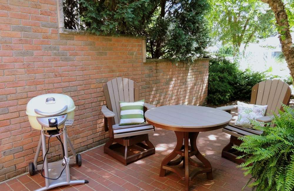 Outdoor patio with electric grill-for light grilling.