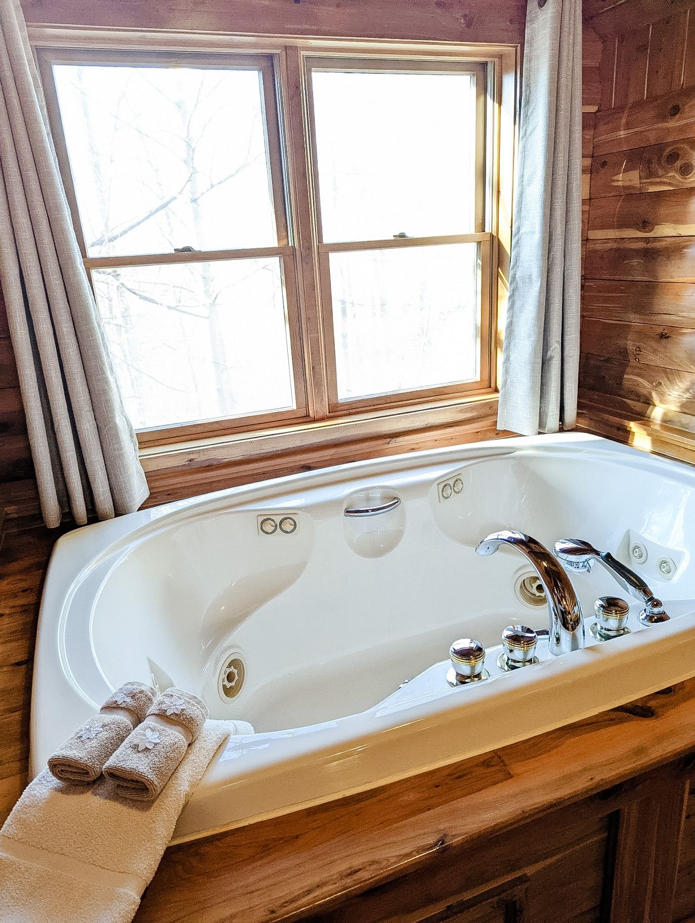Donna's features five cedar log cabins that beckon visitors to experience the natural wonder of Ohio’s Amish Country in Holmes County. All five cedar log cabin rentals include a bubbling Jacuzzi for two-either facing a stone fireplace in the living room, or in a more intimate setting in a dormer window alcove in the lofted bedroom. Several of the cabins also feature a heart-shaped Jacuzzi and others feature an oblong-shaped Jacuzzi.