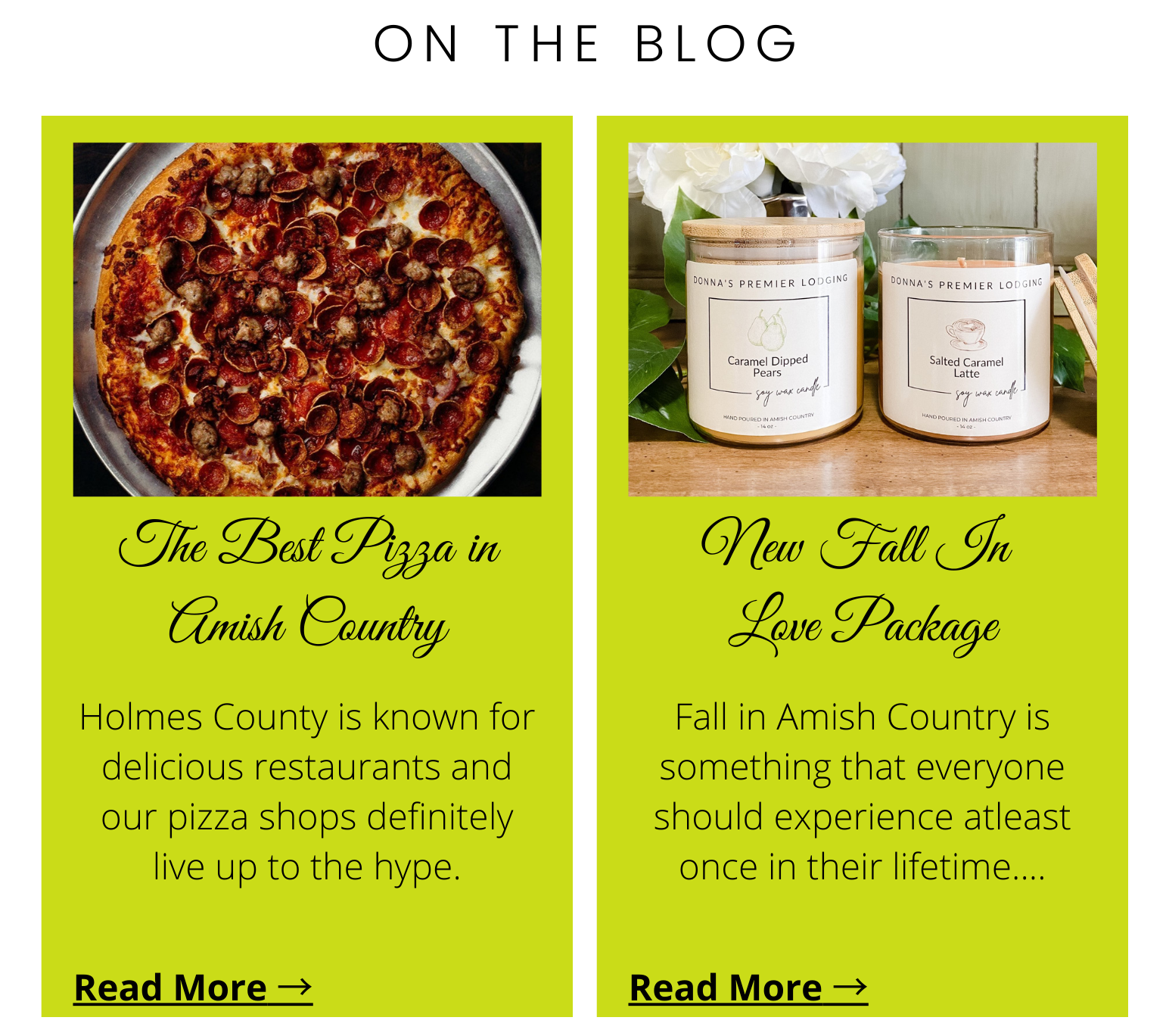 When you think of romantic destinations, your mind might drift to Paris cafes or Caribbean beaches. But tucked away in the rolling hills of eastern Ohio lies one of America's most charming and unexpectedly romantic destinations: Amish Country. This peaceful region offers couples a chance to slow down, reconnect, and experience a simpler way of life together, making it an ideal setting for an intimate getaway. Add Ohio Amish Country to your romantic bucket list. Cozy Accommodations That Set the Mood The heart of any romantic getaway lies in where you rest your heads, and Ohio's Amish Country delivers at Donna’s Premier Lodging which promises romantic seclusion in 17 different accommodation options . Many couples opt for a private cottage or chalet tucked away on a wooded hillside outside of town. Romancing the Stone is a luxurious cabin with a Jacuzzi room that boasts a heart-shaped Jacuzzi, a stone fireplace that beckons couples to relax, and a full kitchen where couples can playfully create meals together. For couples who want intimacy a bit closer to town, Donna’s provides suites, cottages, and villas all within walking distance of Berlin. Couples can stroll hand in hand from their exquisite accommodation to dinner or other activities. Thoughtful add-ons can add that special touch to a romantic getaway in Ohio Amish Country. Consider chocolate-covered strawberries, a dozen roses, or in-room massages. Culinary Adventures for Two Food becomes even more meaningful when shared with someone special, and Amish Country's culinary scene provides countless opportunities for romantic dining. Start your day at a local bakery, sharing warm cinnamon rolls and fresh coffee while planning your adventures. The Berlin Farmstead offers hearty, home-style meals served family-style—perfect for couples who enjoy trying a bit of everything together. For wine-loving couples, the region boasts several excellent wineries and vineyards. Spend an afternoon at Breitenbach Wine Cellars , Ohio's most awarded winery, sampling local varietals while overlooking the scenic countryside. Many wineries offer private tastings and romantic picnic packages that let you savor both the wine and each other's company. Dinner and a show is a classic date night activity for a good reason. Sampling food together and then enjoying entertainment is a memorable experience that provides opportunity for conversation and laughter. The nearby Ohio Star Theater often combines a show with a buffet at a local restaurant for two date activities with one ticket. Romantic Activities and Experiences Ohio's Amish Country offers numerous activities designed for couples to enjoy together. Take a leisurely horse-drawn buggy ride through the countryside—there's something inherently romantic about the gentle clip-clop of hooves and the unhurried pace of travel. Consider requesting a sunset ride that culminates with stunning views across the rolling farmland. For couples who enjoy shopping together, the region's numerous antique shops , craft stores, and farmers' markets provide hours of exploration. Browse handmade quilts, sample local cheeses, and discover unique treasures that will serve as lasting mementos of your romantic escape. There many options for romantic activities in Ohio Amish Country that will not break the bank . Explore the downtown areas or the state parks. Take self-guided tours of covered bridges or the cheese making process. Simply take a drive and get lost together along the scenic roads. Seasonal Romance Each season brings its own romantic appeal to Amish Country. Spring offers blooming wildflowers and baby animals on the farms, while summer provides perfect weather for outdoor activities and festivals. Fall transforms the landscape into a tapestry of golden and crimson hues, ideal for scenic drives and cozy evenings by the fire. Winter brings a peaceful silence to the region, with opportunities for warm evenings spent in front of crackling fireplace and a wonderland of holiday activities . Embracing the Simple Life Together Perhaps the most romantic aspect of an Amish Country getaway is the opportunity to disconnect from the digital world and focus entirely on each other. Without the constant buzz of notifications and the pressure of daily life, couples can rediscover the joy of conversation, the pleasure of unhurried meals, and the simple contentment of being present in the moment. The region's emphasis on craftsmanship, community, and traditional values creates an atmosphere where relationships can flourish. Whether you're celebrating an anniversary, planning a proposal, or simply wanting to reconnect, Ohio's Amish Country provides the perfect backdrop for romance. Pack your bags, leave your worries behind, and discover why this peaceful corner of Ohio has become a favorite destination for couples seeking authentic romance and genuine connection. In a world that moves too fast, Amish Country invites you to slow down and remember what truly matters: the person by your side and the love you share.