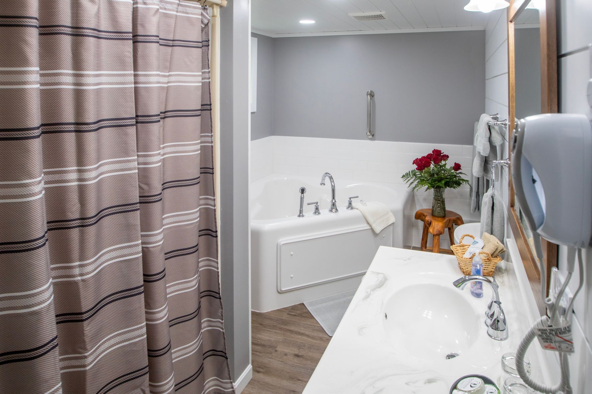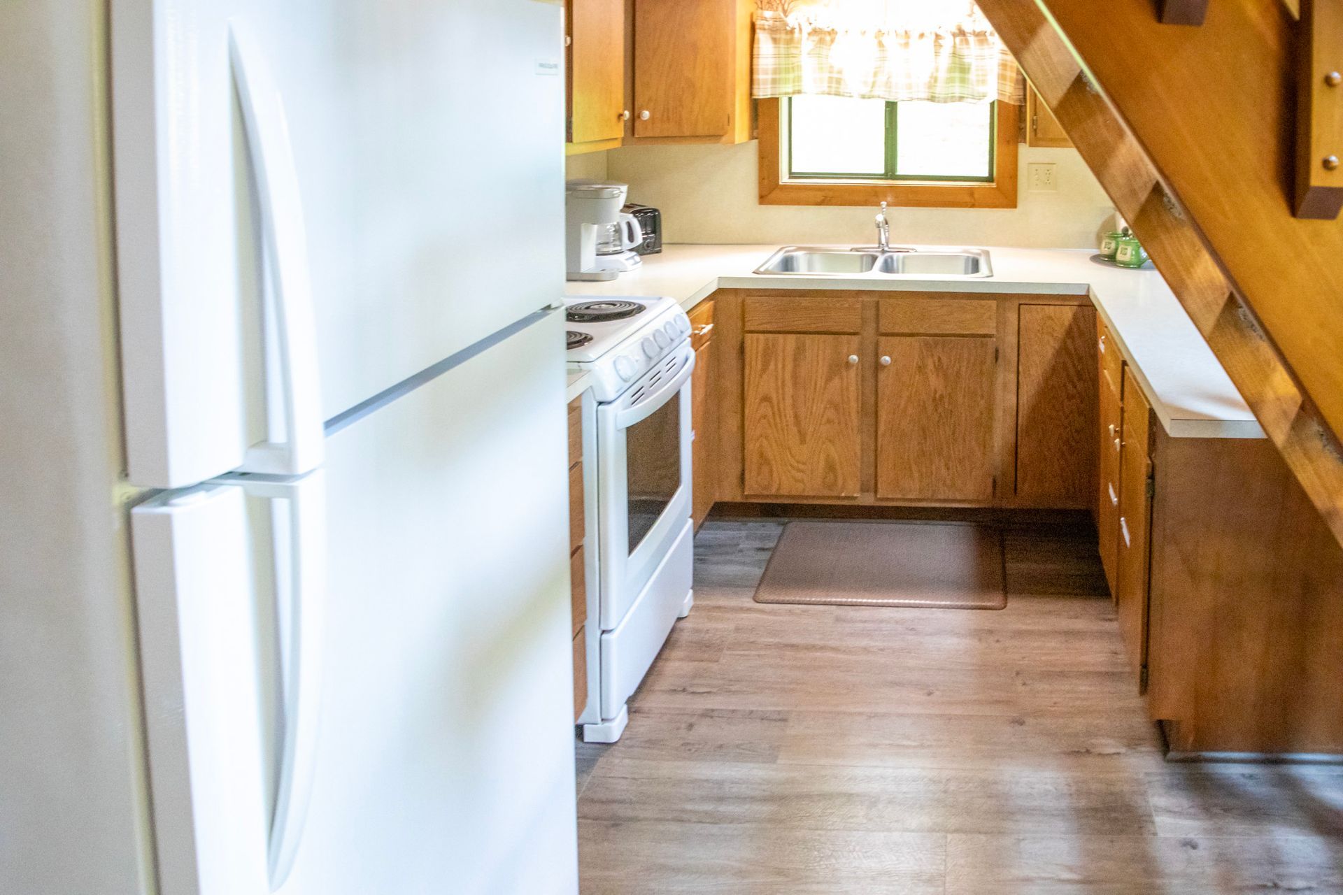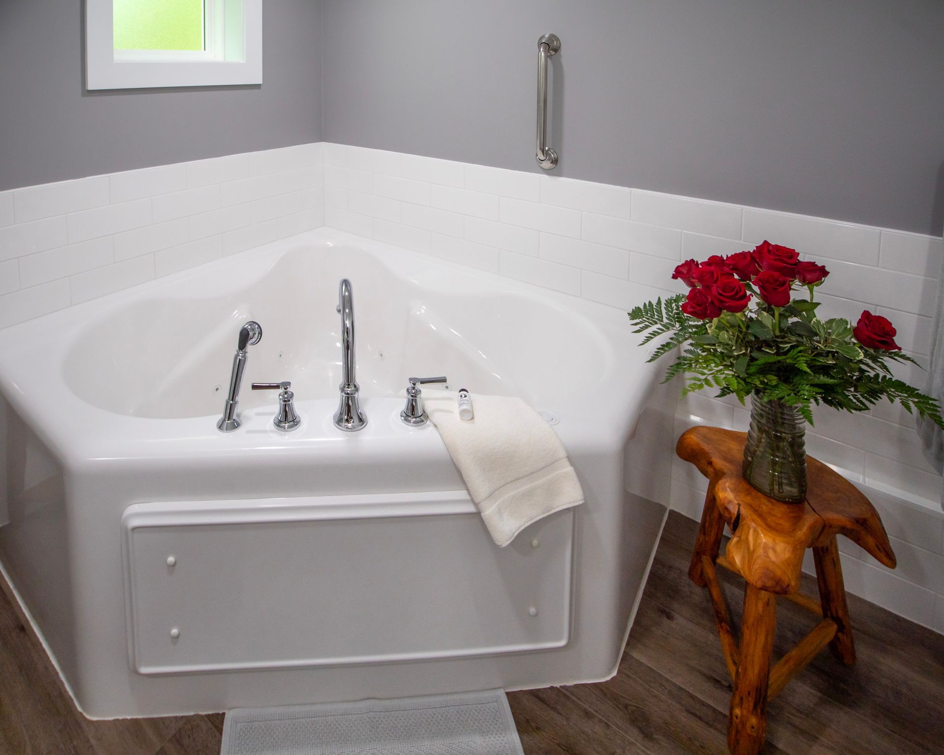 The Donna’s Premier Lodging Original Log Cabin holds a special place in the hearts of returning guests. As the very first rustic retreat on our lush, wooded grounds, its timeless charm continues to enchant all who visit. A winding paved driveway leads to one of Amish Country’s most beloved log cabin rentals—a serene escape where stress melts away and carefree relaxation takes over. Hickory rockers on the front porch complete this idyllic, nature-lover’s paradise.