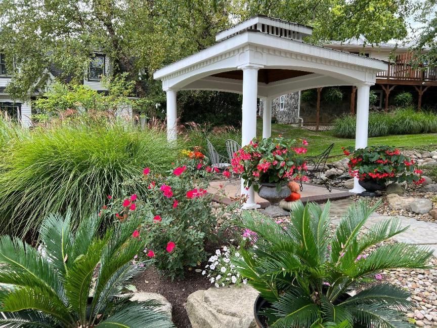 A 10’ x 10’ pavilion was completed on the main grounds in 2015. The pavilion boasts Azek hardwood flooring, a double roof, and lighting. It is a popular location for couples planning intimate weddings and elopements at the inn. The pavilion is near the garden waterfalls which makes a lovely backdrop for wedding photos
